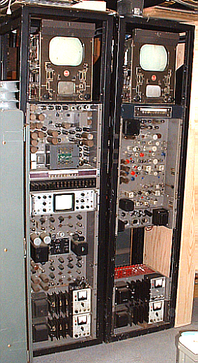 Some of the rack mounted support equipment for the RCA TK-41 camera chain. In the right rack from top to bottom, are a RCA TM-6C Monitor and Scope, RCA Rack Switcher, RCA