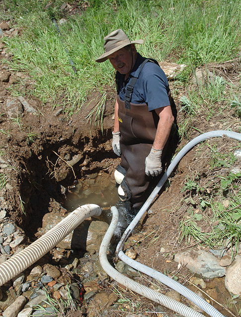 Here is my gold mining partner, Dan Repke working in a hole near the creek. He is using a 3" land based dredge.